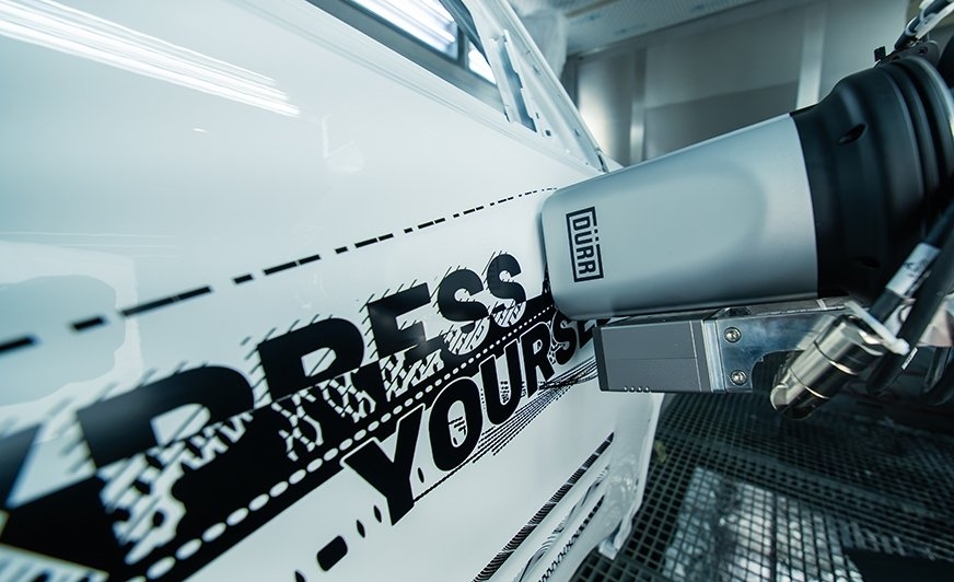 Компанія Dürr представляє систему EcoNextJet, яка дозволяє друкувати складні малюнки, візерунки та написи безпосередньо на кузовах автомобілів під час процесу фарбування. Це рішення усуває необхідність використання плівки та ручного фарбування, замінюючи їх повністю автоматизованим процесом.
