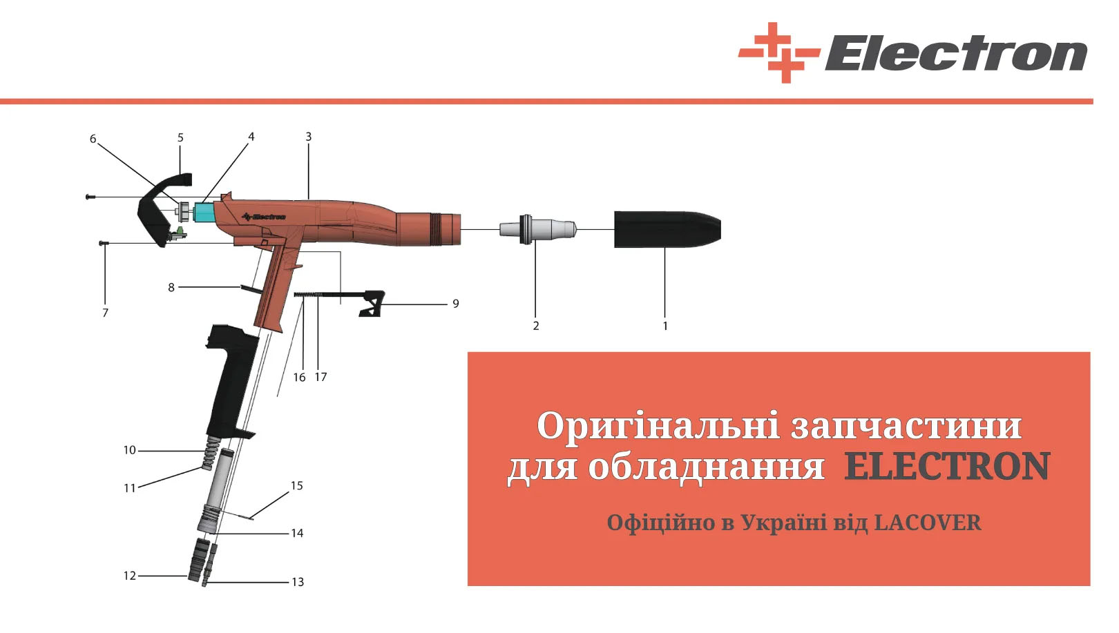 LACOVER — офіційний представник ELECTRON в Україні.Ми здійснюємо продаж оригінальних запчастин до обладнання для порошкового фарбування ELECTRON, гарантуючи повну сумісність, стабільну роботу та подовження ресурсу вашого обладнання.