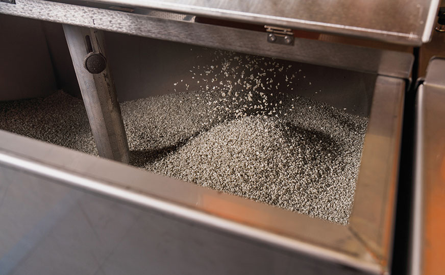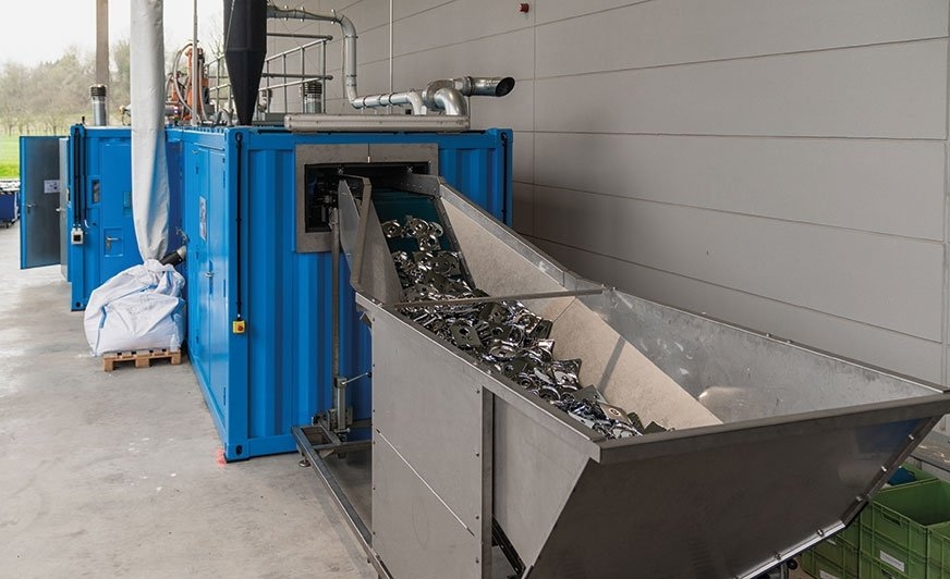 Після переробки матеріал транспортується до третього контейнера, де сушиться. Потім окремі фракції матеріалу розділяються за допомогою магнітної сепарації. Більшість з них – 70–80 відсотків – це пластмаси. Щоб їх можна було використовувати для виробництва нових преміальних продуктів, вони повинні мати стабільну чистоту >99,8 %. Решта матеріалу складається з міді, нікелю та хрому, що походять з гальванічного покриття, і вона постачається на підприємства вторинної металургії.