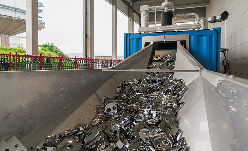 Оскільки Hansgrohe Group висуває дуже високі вимоги до якості до своєї арматури для душу, ванни та кухні, певний рівень виробничих відходів є неминучим. «Хромовані компоненти з ABS-пластику були для нас особливою проблемою», – розповідає Девід Запф, фахівець з технологій поверхні в Hansgrohe Group, маючи на увазі, наприклад, корпуси душових лійок, фланці труб, а також ручки та кнопки арматури.