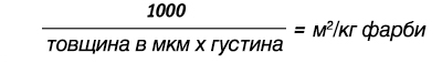 Метод визначення теоретичної витрати фарби в (м2/кг) на основі товщини покриття (мкм) та питомої ваги (густини) фарби (г/см3)